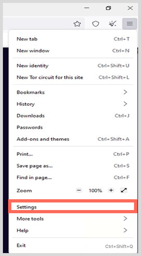 - Πρώτα,ανοιχτόTor Browser και μετάκλικστο "εικονίδιο χάμπουργκερ (τρεις οριζόντιες γραμμές)” στην επάνω δεξιά γωνία.