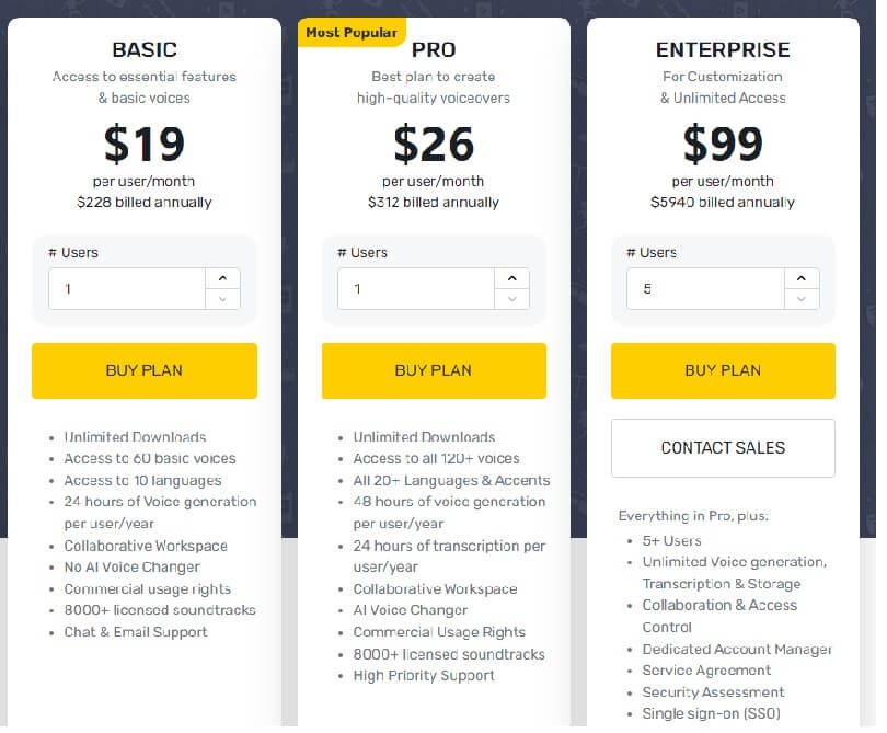 Με μια ποικιλία χαρακτηριστικών, όπως ακριβείς φωνές μετατροπής κειμένου σε ομιλία σε 120+ γλώσσες, επεξεργασία ήχου και βίντεο σε πραγματικό χρόνο, έλεγχο τόνου και έμφασης για πρόσθετο ρεαλισμό, προηγμένη τροποποίηση ήχου και επιχειρηματικό σχέδιο προσανατολισμένο στην ομάδα, το Murf AI ξεχωρίζει ως κορυφαία λύση.