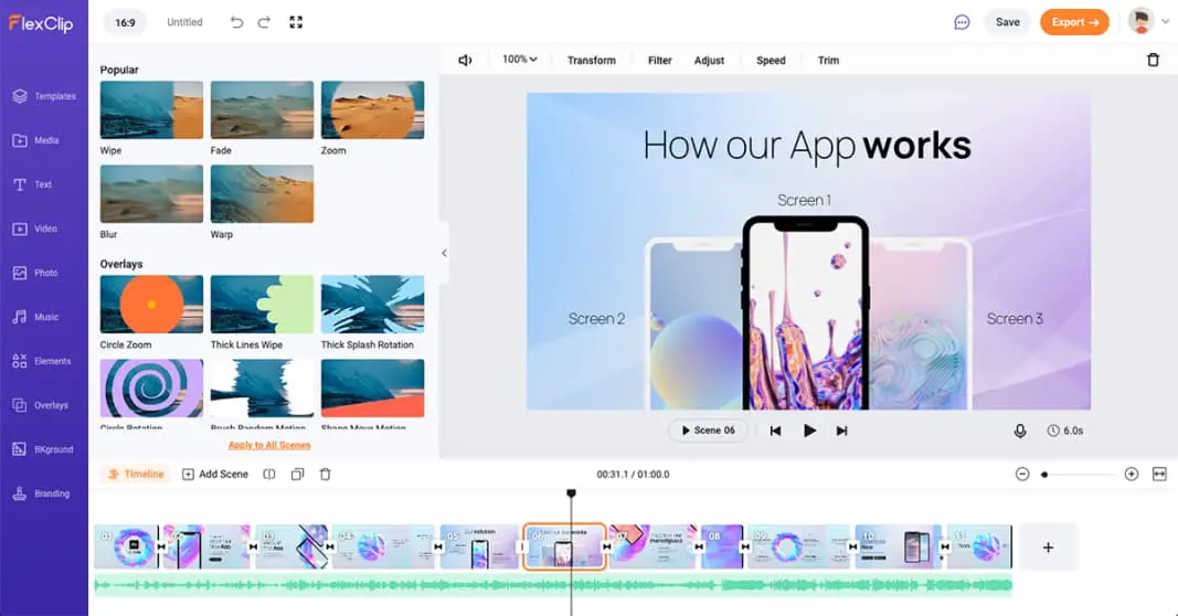 Το Flexclip είναι έναΓεννήτρια βίντεο AIΑυτό σας επιτρέπει να δημιουργείτε εύκολα και να επεξεργαστείτε βίντεο υψηλής ποιότητας online. Μία από τις καλύτερες πτυχές του εργαλείου είναι ότι δεν χρειάζεστε καμία εμπειρία στην επεξεργασία βίντεο ή στο σχεδιασμό.ΕυελιξίαΤο AI μπορεί να μετατρέψει την ανάρτηση του ιστολογίου ή το κείμενο σας σε ένα συναρπαστικό βίντεο που θα χρησιμοποιηθεί για τα κοινωνικά μέσα ή τον ιστότοπό σας. Ο επεξεργαστής βίντεο ξεχωρίζει με τη φιλική προς το χρήστη διεπαφή μεταφοράς και απόθεσης, επιτρέποντας στους χρήστες να στρώσουν αβίαστα, να συνδυάζουν και να επεξεργάζονται κλιπ. Από τη βασική κοπή και την περικοπή σε περίπλοκα αποτελέσματα και μεταβάσεις, το FlexCLIP προσφέρει μια ολοκληρωμένη σειρά εργαλείων. Η βιβλιοθήκη αποτελεσμάτων της είναι ιδιαίτερα εντυπωσιακή, διαθέτει μια σειρά επιλογών για την ανύψωση οποιουδήποτε έργου βίντεο.