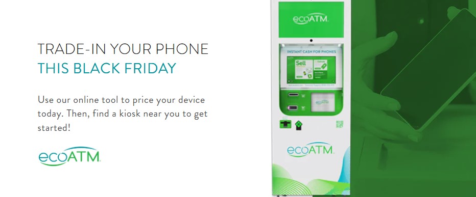 Είναι ένα νέο τηλέφωνο στη λίστα της Μαύρης Παρασκευής; Μπορεί να είστε σε θέση να μειώσετε ακόμη περισσότερο την τιμή με τη διαπραγμάτευση στο χρησιμοποιημένο τηλέφωνό σας. Απλά φέρε το σε ένα περίπτερο Ecoatm. Εάν μπορούμε να σας προσφέρουμε μετρητά για αυτό, θα το κάνουμε. Διαφορετικά, θα το βγάλουμε από τα χέρια σαςμε τρόπο φιλικό προς το πράσινο.