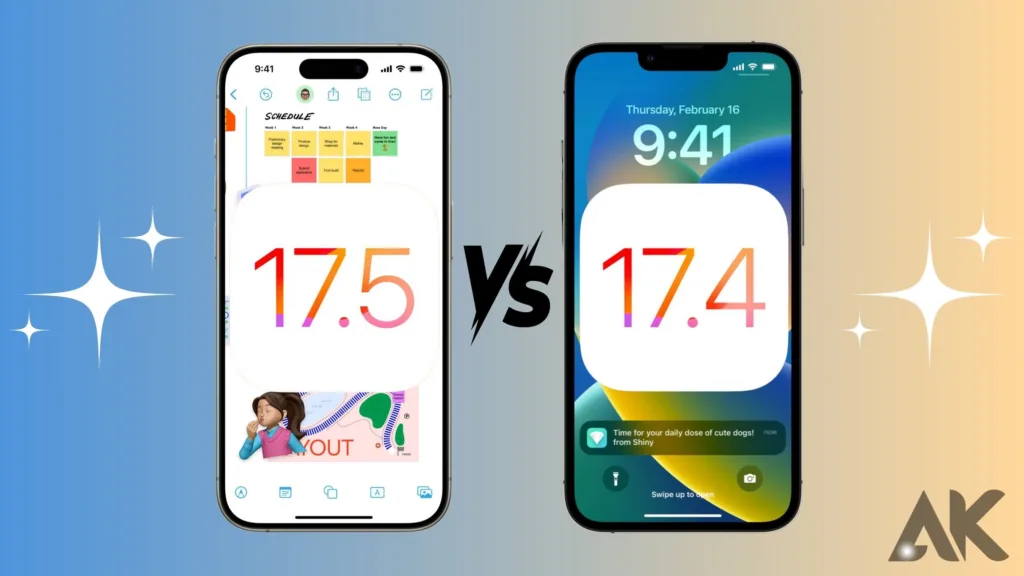 Κύρια ιδιότητες iOS 17.4 έναντι iOS 17.5. Ενώ το iOS 17.5 έκανε σημαντικές βελτιώσεις, το iOS 17.4 βασίζεται στο έργο του προκάτοχού του δίνοντας προσοχή στη βελτίωση των σημερινών χαρακτηριστικών και στην προσθήκη εισόδου χρήστη. Στο iOS 17.5 έναντι του iOS 17.4 σύγκριση, το iOS 17.4 ξεχωρίζει για την εστίασή του στην παροχή μικρών αλλά σημαντικών βελτιώσεων σε σημαντικούς τομείς όπως η απόδοση, η διάρκεια ζωής της μπαταρίας και η σταθερότητα του συστήματος. Μπορεί να μην έχει τις ίδιες εντυπωσιακές εξελίξεις με τον διάδοχό της.