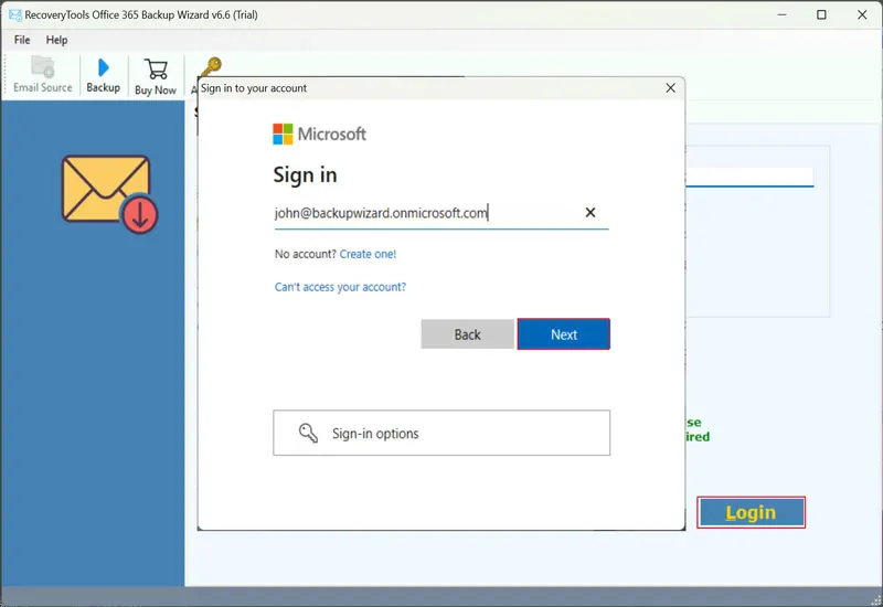 - Στη συνέχεια, θα ανοίξειΗ επίσημη σύνδεση της MicrosoftΠαράθυρο για ασφαλή σύνδεση στο λογαριασμό σας O365. Εδώ,Εισαγάγετε τον απαιτούμενο κωδικό πρόσβασης και λεπτομέρειεςκαι συνδεθείτε για να συνεχίσετε.