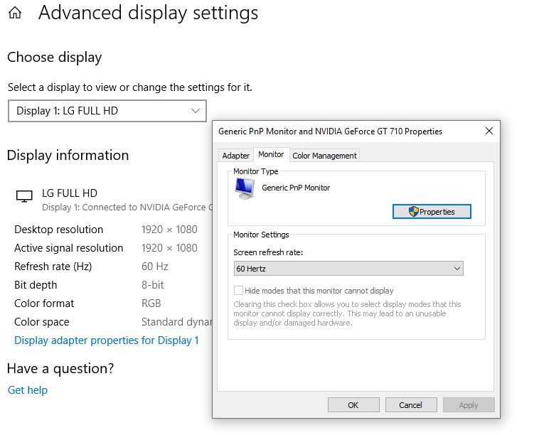 - Επιλέξτε το συνιστώμενο ρυθμό για την οθόνη σας από το αναπτυσσόμενο μενού.