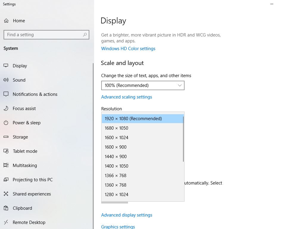 - Σημείωση: Μπορείτε να δοκιμάσετε να αλλάξετε την ανάλυση εκτός από το συνιστώμενο ψήφισμα εάν δεν λειτούργησε. Συνιστάται να επιλέξετε μια χαμηλή ανάλυση και να εργαστείτε προς τα πάνω για να προσδιορίσετε ποιο λειτουργεί καλύτερα για εσάς.