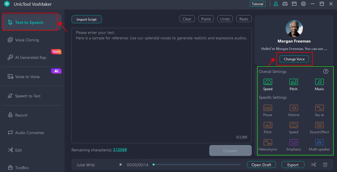 - Η εύκολη προσαρμογή, όπως η αλλαγή της ταχύτητας, ο τόνος, η προφορά κ.λπ., για να κάνει τη φωνή να ακούγεται πιο ρεαλιστική.