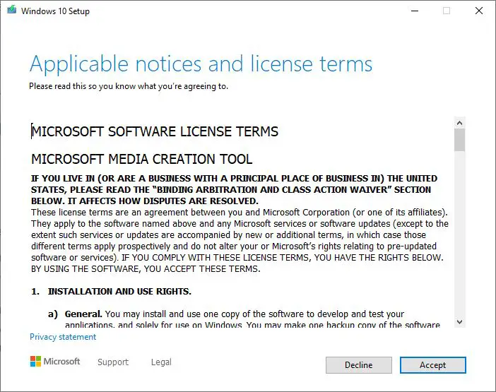Το Media Creation Tool είναι ο επίσημος και προτεινόμενος τρόπος λήψης ή δημιουργίας Bootable USB για Windows 10. Απλοποιεί τη διαδικασία και διασφαλίζει ότι διαθέτετε την πιο πρόσφατη έκδοση των Windows 10. Μπορείτε να ακολουθήσετε τα παρακάτω βήματα για να δημιουργήσετε μέσα εγκατάστασης των Windows 10 χρησιμοποιώντας το Media Creation Tool.
