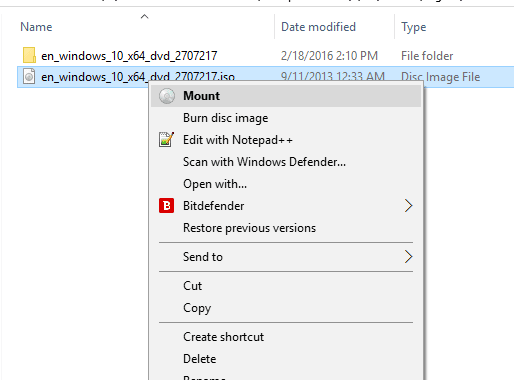 - Εντοπίστε το αρχείο ISO των Windows 10, κάντε δεξί κλικ πάνω του και επιλέξτε την επιλογή Mount.