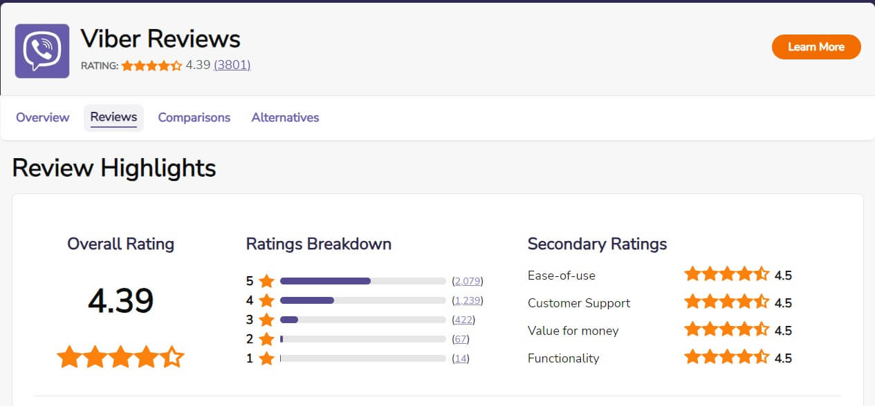 Οι πράξεις μιλούν πιο δυνατά από τα λόγια. Η αξιολόγηση του Viber και του WhatsApp εξαρτάται από τα σχόλια των χρηστών. Ακολουθούν οι συνολικές αξιολογήσεις για αυτά τα δύο προϊόντα: