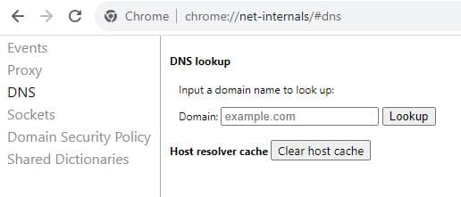 - Επίσης, ανοίξτε το Google Chrome και επικόλληση στη γραμμή διευθύνσεων: Chrome: // net-Internals/#DNS πατήστε το πλήκτρο Enter και κάντε κλικ στο "Καθαρή κρυφή μνήμη υποδοχής"Κουμπί.