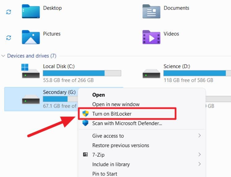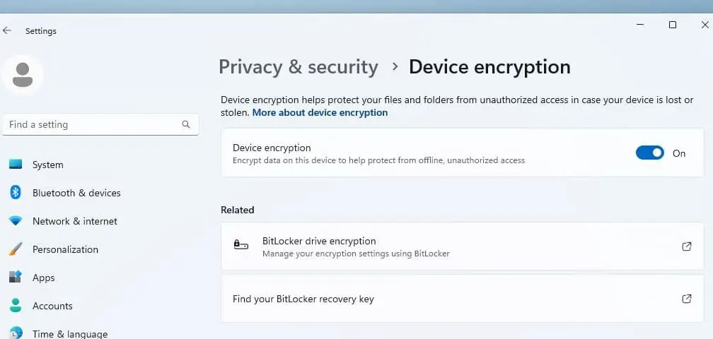 Επίσης, μπορείτε να κρυπτογραφήσετε τη μονάδα δίσκου σαςΚρυπτογράφηση δίσκου Bitlockerπου μπορεί να σας βοηθήσει να προστατεύσετε τα δεδομένα σας σε περίπτωση κλοπής ή απώλειας. Κρυπτογραφεί ολόκληρο τον σκληρό σας δίσκο και εμποδίζει την μη εξουσιοδοτημένη πρόσβαση στα δεδομένα σας.
