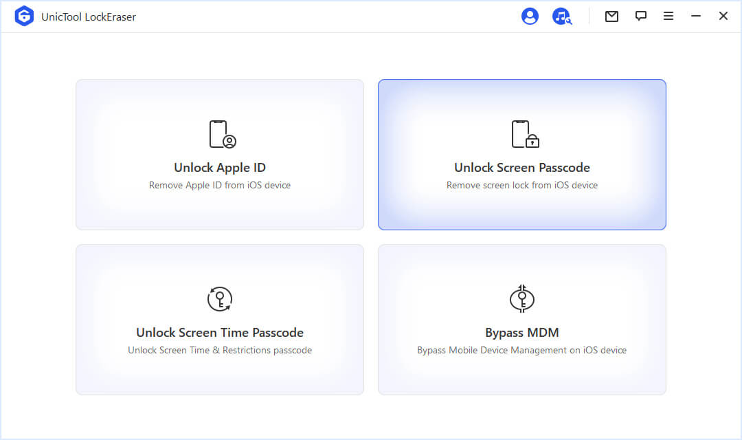 Unictool Lockeraserείναι ένα εξελιγμένο πρόγραμμα ειδικά σχεδιασμένο για να λύσει ένα ευρύ φάσμα προβλημάτων κλειδώματος και ζητήματα iPhone αποτελεσματικά και με ασφάλεια, τα οποία περιλαμβάνουν την είσοδο στο iPhone σας εάν ξεχάσατε τον κωδικό πρόσβασής σας, ξεκλειδώνοντας το αναγνωριστικό της Apple, ξεκλειδώνοντας τον κωδικό πρόσβασης της οθόνης σας και παρακάμπτοντας μια κλειδαριά MDM. Όντας εξαιρετικά εύκολο στη χρήση, το Lockeraser μπορεί να ξεκλειδώσει το iPhone σας απευθείας μόνο με αρκετά λεπτά.