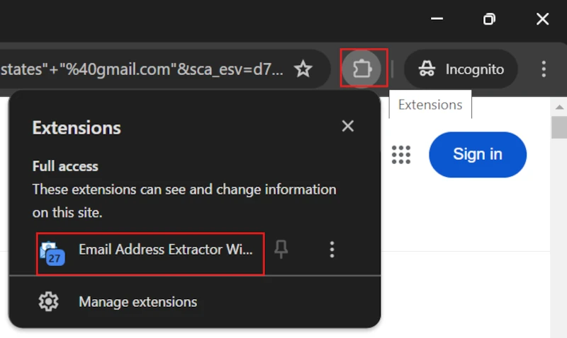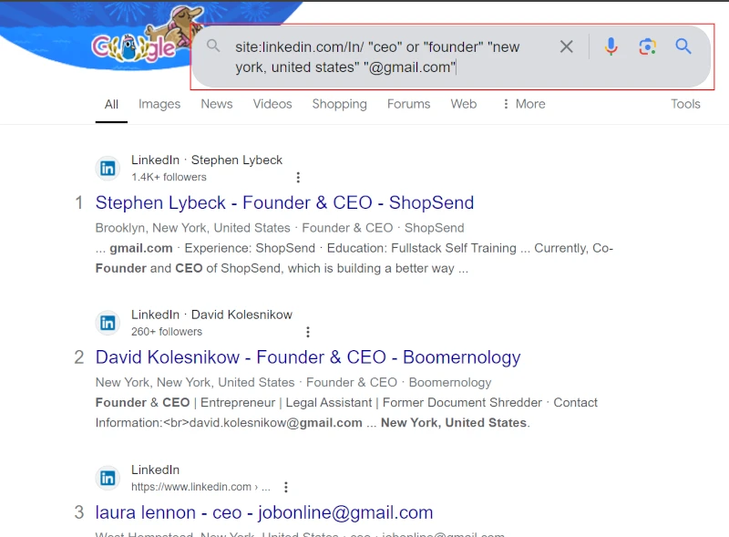 Χρησιμοποιώντας τοΕπέκταση χρώματοςΚάποιος μπορεί εύκολα να εξαγάγει διευθύνσεις ηλεκτρονικού ταχυδρομείου από το LinkedIn δωρεάν. Δεδομένου ότι αυτή η επέκταση Google Chrome είναι ελεύθερα διαθέσιμη για απεριόριστη χρήση. Επιπλέον, αυτή η επέκταση έχει τη λειτουργικότητα για να εδραιώσει όλες τις διευθύνσεις ηλεκτρονικού ταχυδρομείου που εξάγονται από το LinkedIn σε ένα αρχείο CSV από προεπιλογή. Ωστόσο, η προϋπόθεση για την επιτυχή ολοκλήρωση της εργασίας μας μέσω της επέκτασης είναι να έχει κάποιες βασικές γνώσεις των χειριστών αναζήτησης Google.
