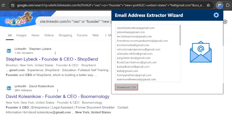 - Στη συνέχεια, η επέκταση θα αυτομάτωςΛάβετε διευθύνσεις email από το LinkedIn.