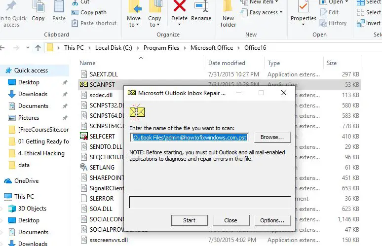 - ΑναζητώScanpst.exeαρχείο διπλό κλικ για να εκτελέσετε το εργαλείο.