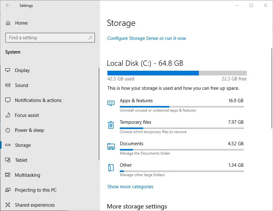 Πέρα από αυτό, μπορείτε να ελευθερώσετε χώρο αποθήκευσης χρησιμοποιώντας το εργαλείο Εκκαθάρισης δίσκου που είναι ενσωματωμένο στα Windows 10.