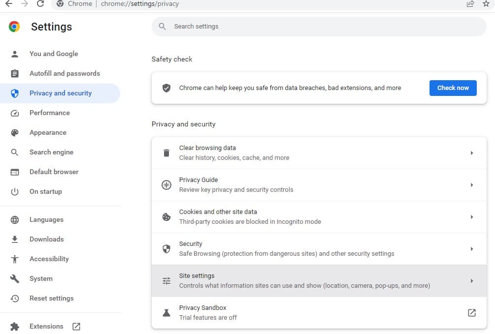 - Ανοίξτε τις ρυθμίσεις του προγράμματος περιήγησης Chrome και αναζητήστε υλικό