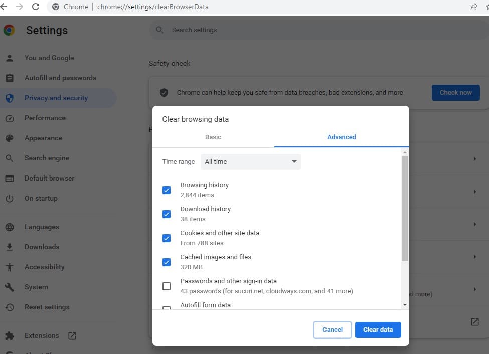 Σημείωση: Στη διεύθυνση Chrome, μπορείτε να πληκτρολογήσετεchrome://settings/clearBrowserDataκαι πατήστε το πλήκτρο enter για να αποκτήσετε απευθείας πρόσβαση στη σελίδα διαγραφής δεδομένων περιήγησης.
