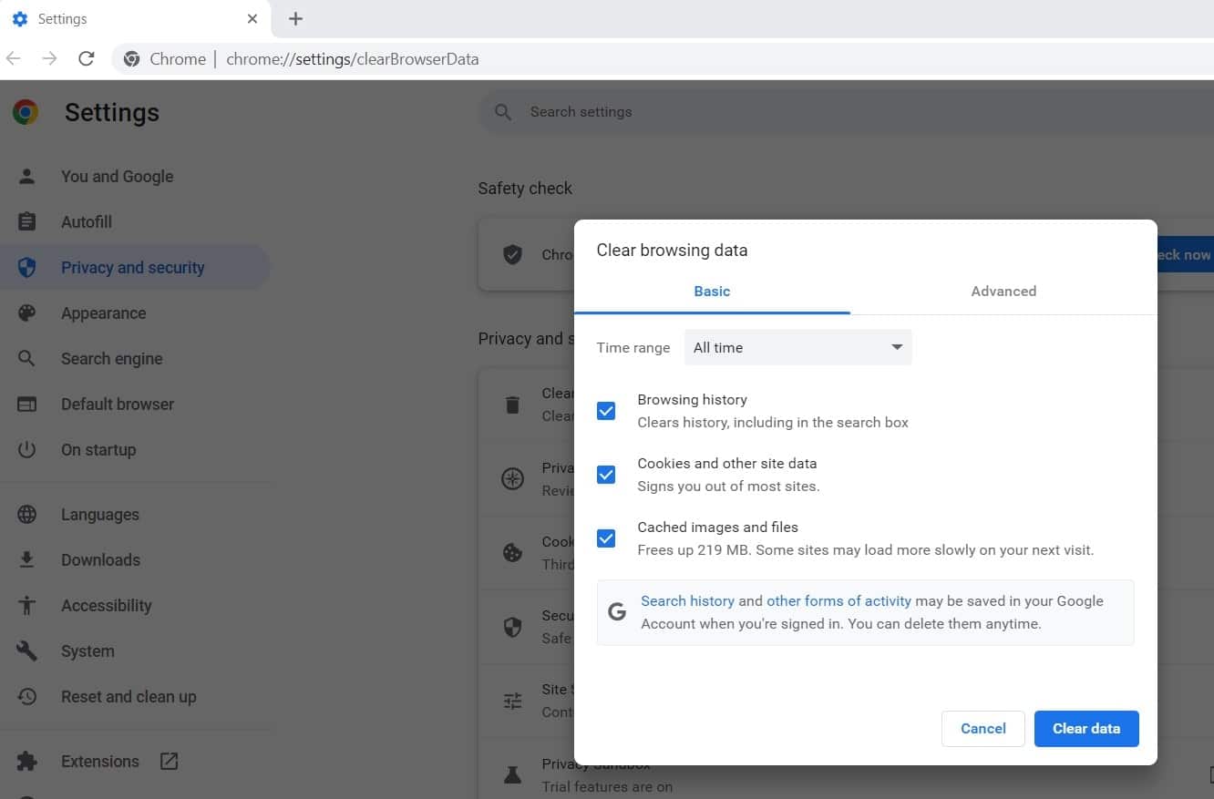 Καθαρίστε την προσωρινή μνήμη και τα cookies του προγράμματος περιήγησης