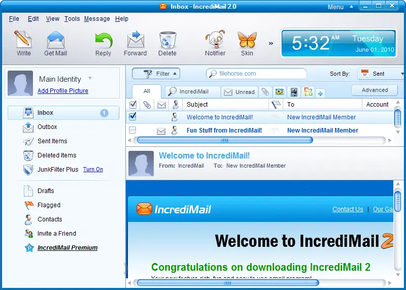 - Κεφαλής XE:Το IncredImail XE προσφέρει μεγάλη ποικιλία κινούμενων σχεδίων και εφέ που δημιουργεί μια διασκέδαση για να μοιράζονται μηνύματα. Επίσης, αποθηκεύει όλα τα μηνύματα ηλεκτρονικού ταχυδρομείου στο φάκελο με επέκταση .imm.