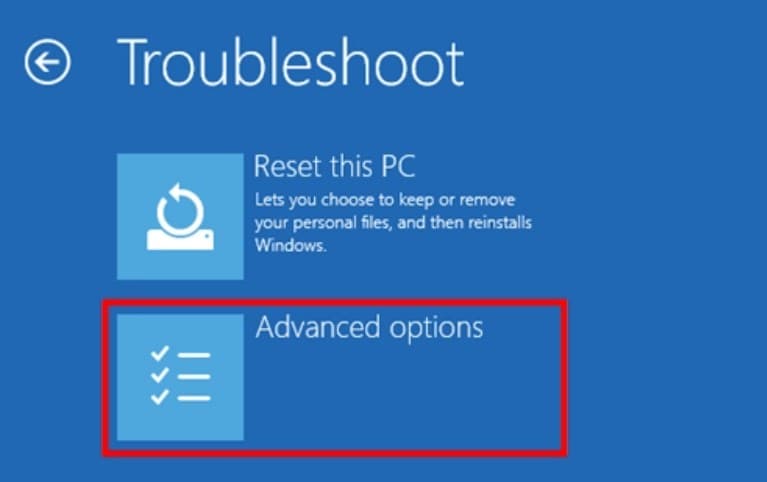 - Κάντε κλικ στην Αντιμετώπιση προβλημάτων και μετά στην επιλογή Σύνθετες επιλογές