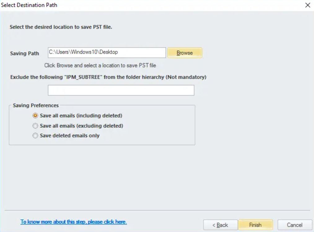 - Υπάρχουν διάφορες διαθέσιμες επιλογές εξοικονόμησης, όπωςΜεταναστεύστε το Office 365 σε Thunderbird, Gmail, PST, κ.λπ..