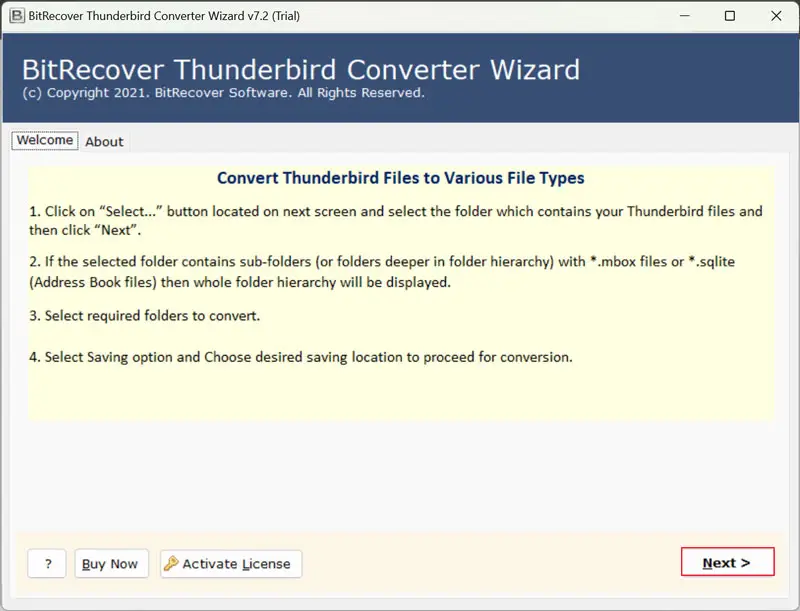 - Στη συνέχεια, επιλέξτε τοΑπαιτούμενοι φακέλοι Thunderbirdκαι πατήστε τοΕπόμενοςκουμπί.