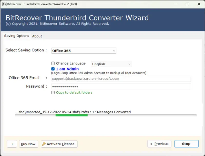 - Περιμένετε λίγο, ώστε η διαδικασίαΕξαγωγή Thunderbird στο Outlook 365ολοκληρώνει.