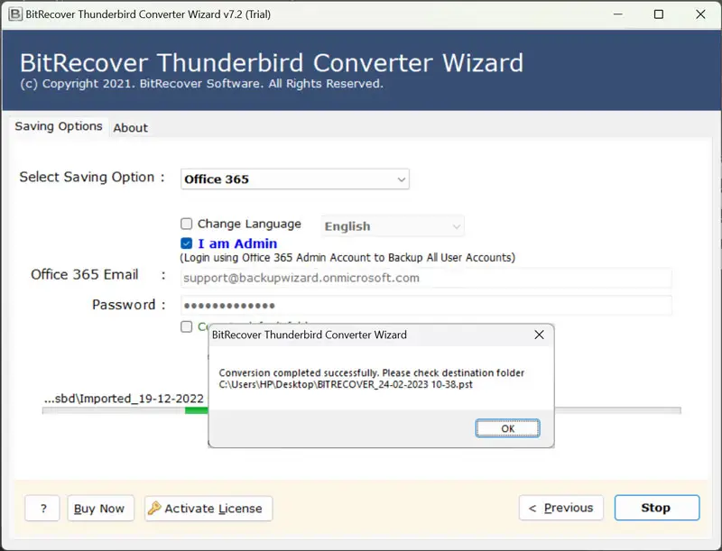 - Και με αυτό, η διαδικασίαΜεταναστεύστε το Thunderbird στο Office 365ολοκληρώνεται με επιτυχία.
