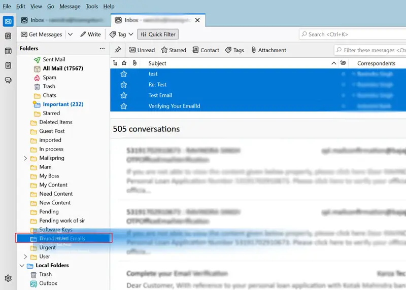 - Μετά από αυτό,Επιλέξτε όλα τα μηνύματα ηλεκτρονικού ταχυδρομείουότι θέλετε να μεταναστεύσετε από το Thunderbird στο Outlook 365.