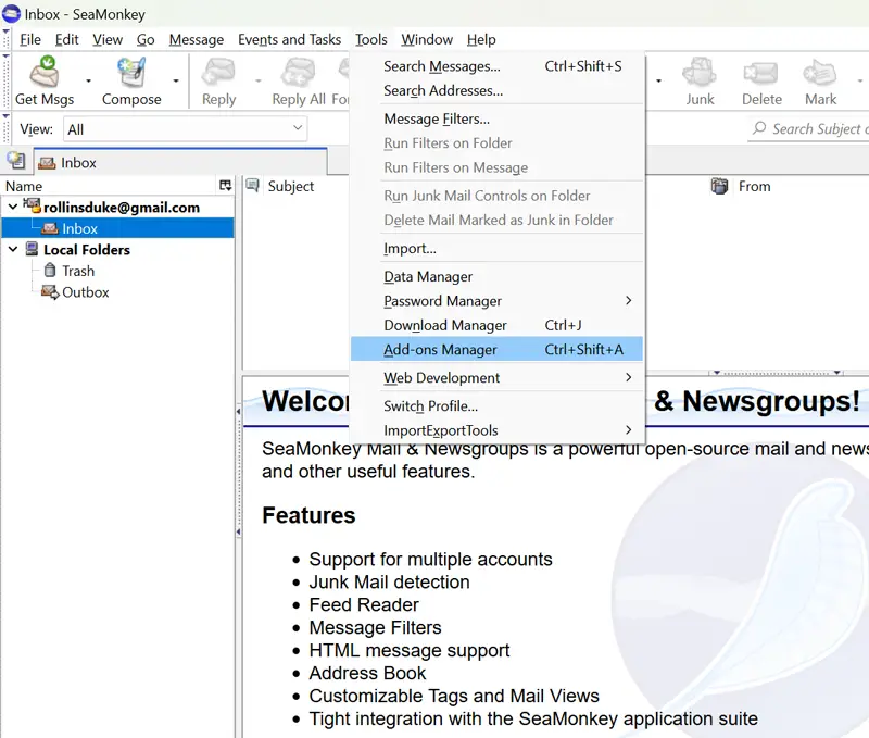 - Συμπιεσμένα γραμματοκιβώτιαεισάγεται στο seamonkeyεφαρμογή.
