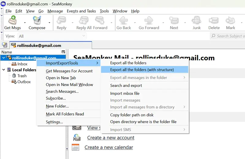 - Επιλέξτε τοSeamonkey Email Account και κάντε δεξί κλικ σε αυτό.