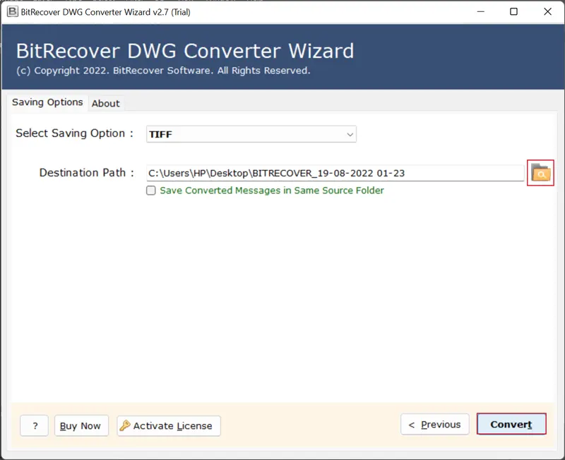 - ΕκτόξευσηDGN σε μετατροπέα TIFFστον υπολογιστή Windows OS και να διαβάσετε οδηγίες για την αλλαγή δεδομένων.