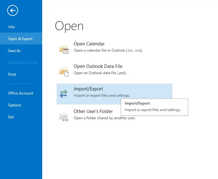 - Στη συνέχεια, επιλέξτεΆνοιγμα & Εξαγωγή >> Εισαγωγή/Εξαγωγή.