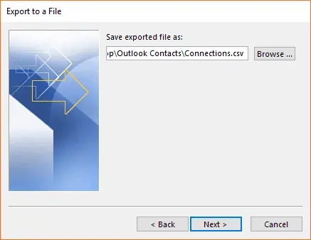 - Επιλέξτε τοΕπαφέςφάκελο για εξαγωγή από το πρόγραμμα-πελάτη του Outlook καιΕπόμενος.