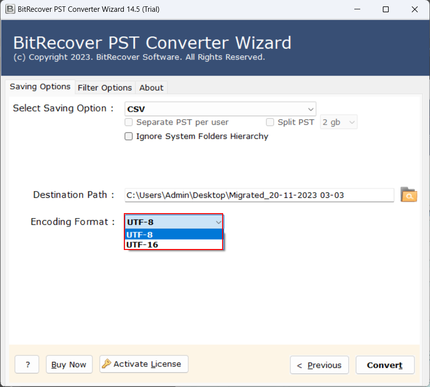 - Στη συνέχεια, επιλέξτε το επιθυμητόδιαδρομή προορισμούκαικωδικοποίησηαπό UTP-8 ή UTF-16.