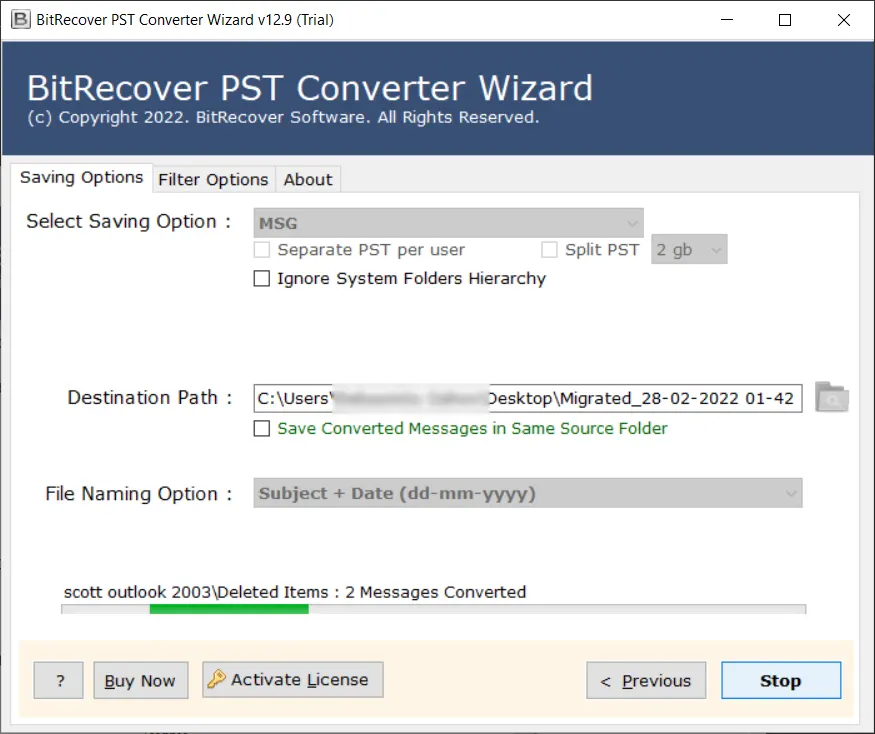 - Στη συνέχεια, επιλέξτε τοπροορισμόςδιαδρομή και δοκιμάστε το επιπλέονχαρακτηριστικάτου μετατροπέα PST σε ICS.