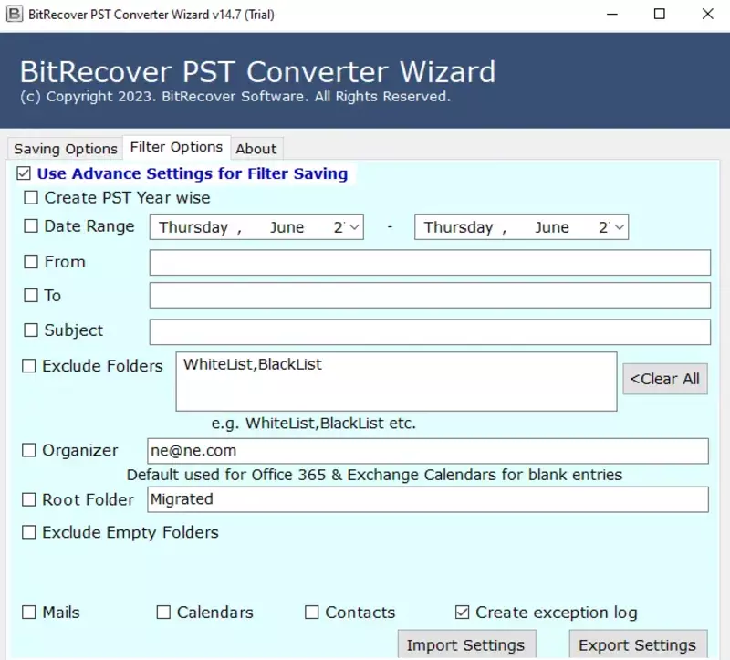 Ο μετατροπέας BitRecover PST σε ICS προσφέρει μια πληθώρα χαρακτηριστικών, όπως έχει φιλική προς το χρήστη διεπαφή, διατηρεί την ιεραρχία φακέλων, δεν μπλέκει με τη μορφοποίηση, επιτρέπει τη μετατροπή PST σε ICS με συγκεκριμένους φακέλους, την κατάργηση των διπλότυπων, τη μαζική μετατροπή PST σε ICS και επίσης αποθήκευση αρχείων PST ως OLM, EMLPS, DBOOCV, OLM, EMLCS, PDF, JPG, GIF κ.λπ. Επιπλέον, αυτό το απόλυτο έξυπνο εργαλείο είναι δωρεάν για χρήση από τους πρώτους χρήστες. Η δοκιμαστική έκδοση αυτού του εργαλείου, σας επιτρέπει να μετατρέψετε τα πρώτα 25 αρχεία σε ICS και άλλες μορφές, από κάθε φάκελο.