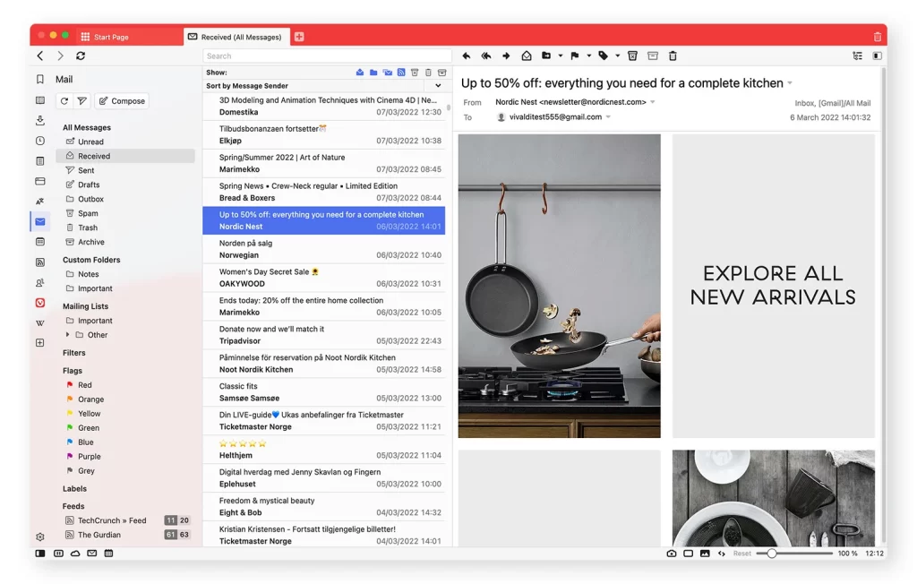 Αλληλογραφία Vivaldiείναι ένας δημοφιλής ελαφρύς πελάτης ηλεκτρονικού ταχυδρομείου με ένα μοντέρνο περιβάλλον σχεδίασης και χρήστη. Προσφέρει μια εύκολη στη χρήση και διαισθητική διεπαφή που το καθιστά κατάλληλο τόσο για προσωπική όσο και για επιχειρηματική χρήση. Αυτό είναι ένα ελαφρύ καιFast Mail Client που τρέχει μέσα σε ένα πρόγραμμα περιήγησης ιστούΚαι επιτρέπει στους χρήστες να διαχειρίζονται αποτελεσματικά τα μηνύματα ηλεκτρονικού ταχυδρομείου τους. Επιτρέπει στους χρήστες να έχουν πρόσβαση στα μηνύματα ηλεκτρονικού ταχυδρομείου τους από οποιαδήποτε συσκευή και πλατφόρμα, συμπεριλαμβανομένων των Windows, Mac και Linux. Διαθέτει επίσης διάφορα χαρακτηριστικά όπως φιλτράρισμα ηλεκτρονικού ταχυδρομείου, αυτόματοι ανταποκριτές, προστασία από ιούς και πολλά άλλα.