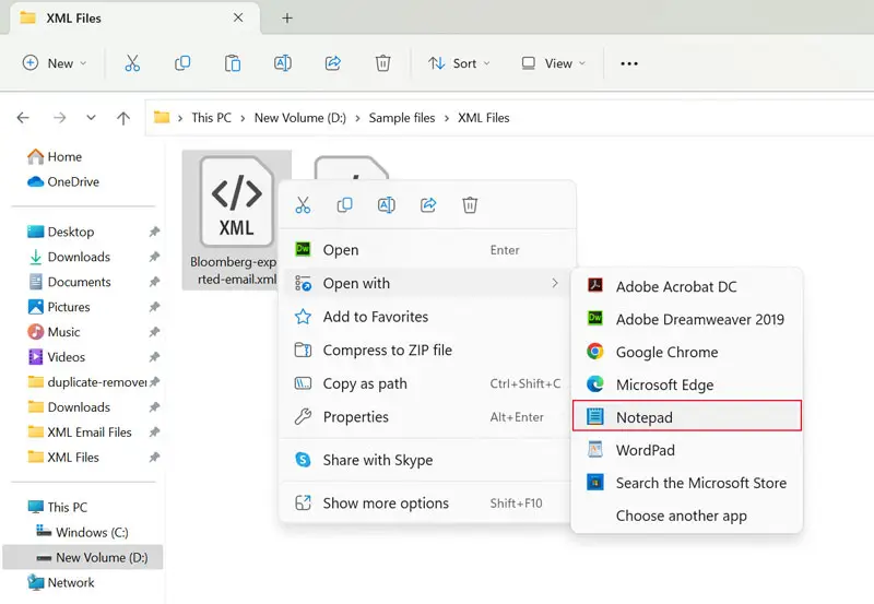 - Κάντε δεξί κλικστο αρχείο XML και επιλέξτε Ανοίξτε μεΜπλοκ.