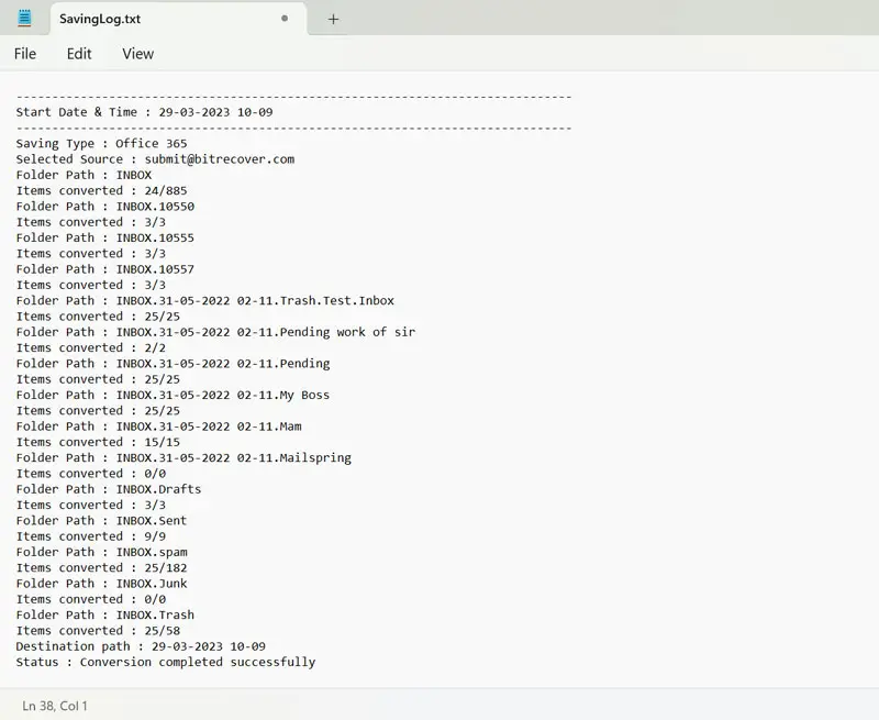 - Το εργαλείο επίσηςδημιουργεί ένα αρχείο αναφοράς καταγραφήςπου αποθηκεύει πληροφορίες σχετικά με τα δεδομένα που μετατρέπονται.