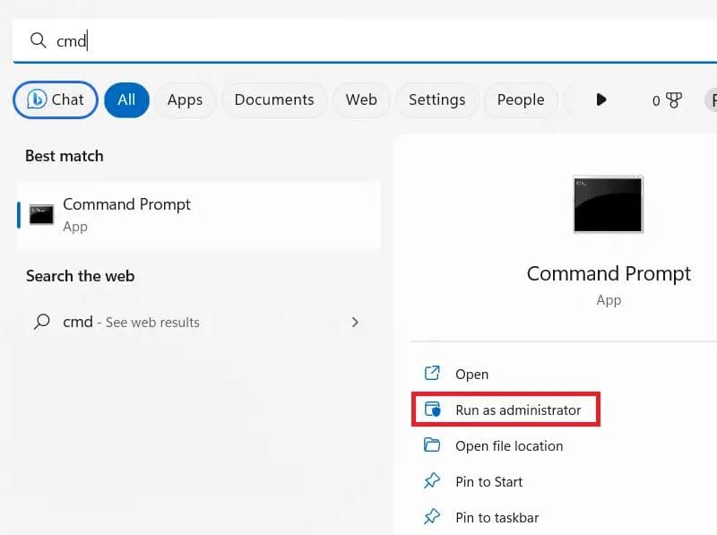 - Πατήστε το πλήκτρο Windows + S, πληκτρολογήστε CMD και επιλέξτε Εκτέλεση ως διαχειριστής,