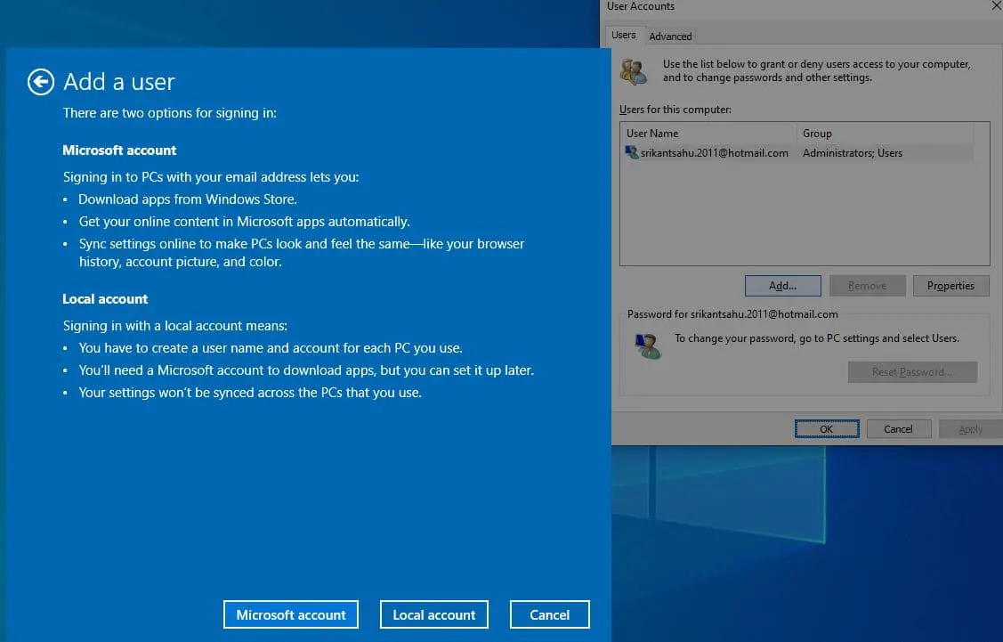 Τοπικός λογαριασμός εναντίον λογαριασμού Microsoft