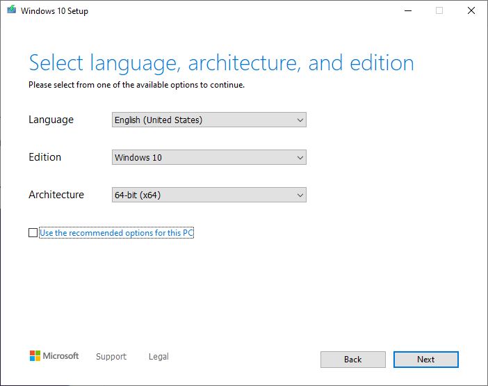 - Τώρα στην επόμενη οθόνη, η γλώσσα, η αρχιτεκτονική και η έκδοση θα επιλεγούν αυτόματα με βάση τη διαμόρφωση του υπολογιστή σας.