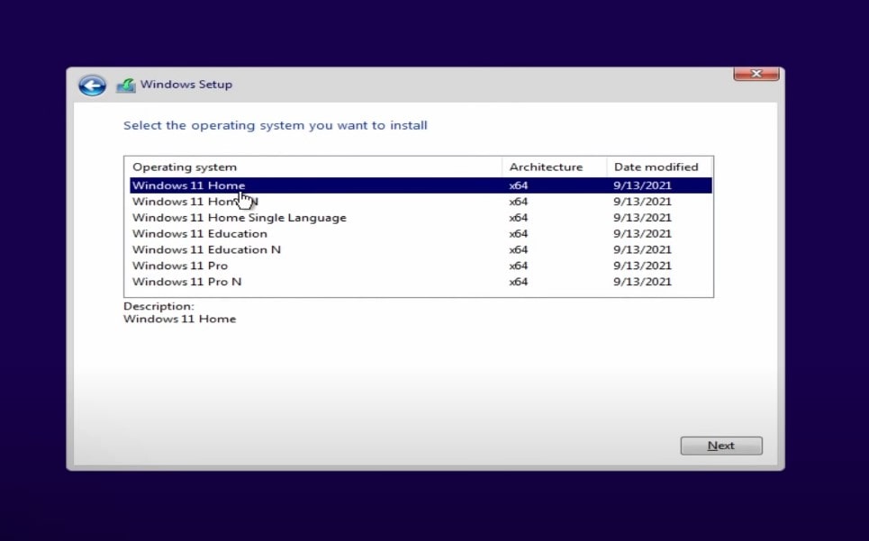 - Στη συνέχεια, μπορείτε να σας ζητηθεί να επιλέξετε την έκδοση των Windows 11. Εάν χρησιμοποιείτε φορητό υπολογιστή με δυνατότητα Windows, η έκδοση μπορεί να επιλεγεί αυτόματα με βάση την προηγούμενη διαμόρφωσή σας. Αυτή είναι συνήθως η έκδοση Windows 11 Home Single Language (SL). Ωστόσο, πρέπει να σημειωθεί ότι μπορείτε να επιλέξετε διαφορετικές εκδόσεις σε αυτήν την οθόνη:
