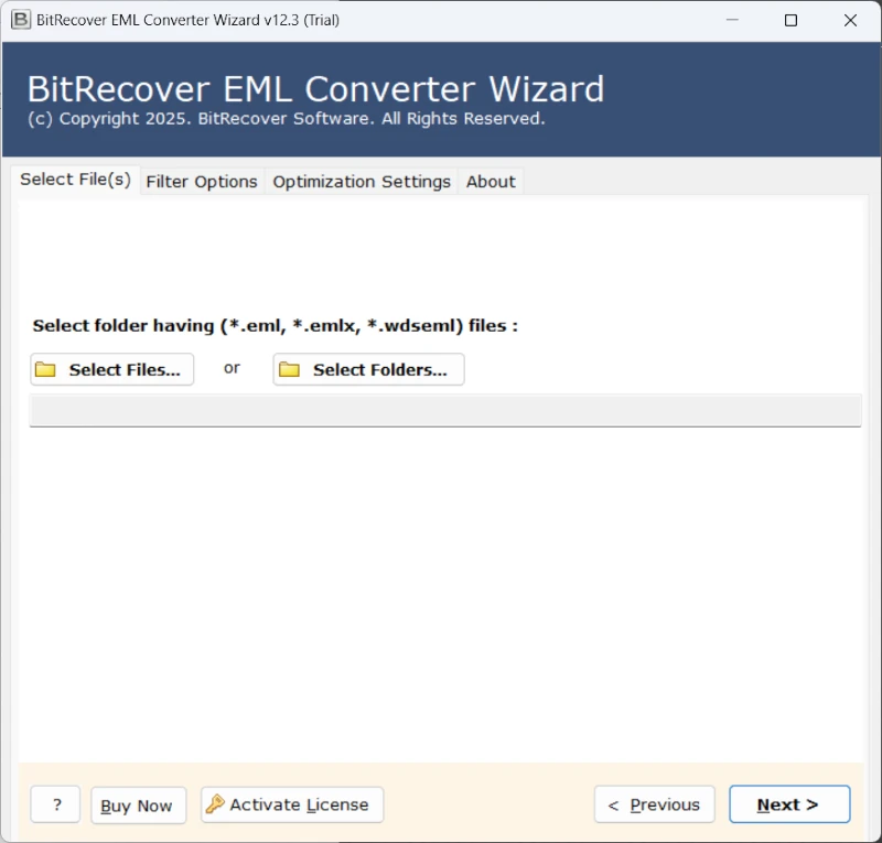 2. Στη συνέχεια, κάντε κλικ στην επιλογή Επιλογή αρχείου ή Επιλογή φακέλων για να προσθέσετε αρχεία EML.