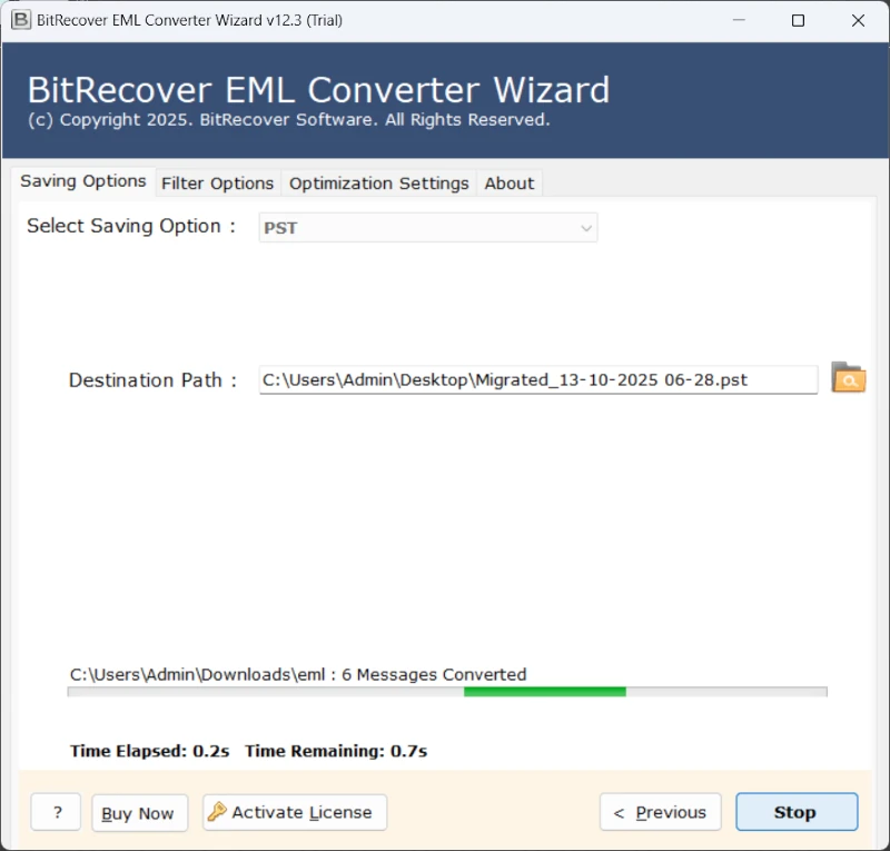 4. Τέλος, επιλέξτε τη διαδρομή αποθήκευσης και κάντε κλικ στο Μετατροπή για να μετατρέψετε το EML σε επεξεργάσιμη μορφή.
