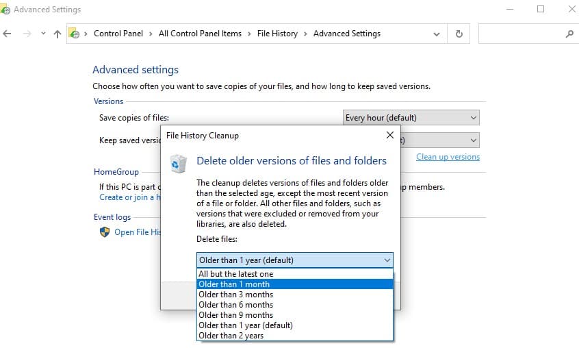 - Εάν θέλετε να διαγράψετε όλες τις εκδόσεις, επιλέξτε μέχρι να χρειαστεί ο χώρος, πράγμα που σημαίνει ότι το ιστορικό αρχείων θα διαγράψει όλες τις εκδόσεις εκτός από τις τελευταίες.