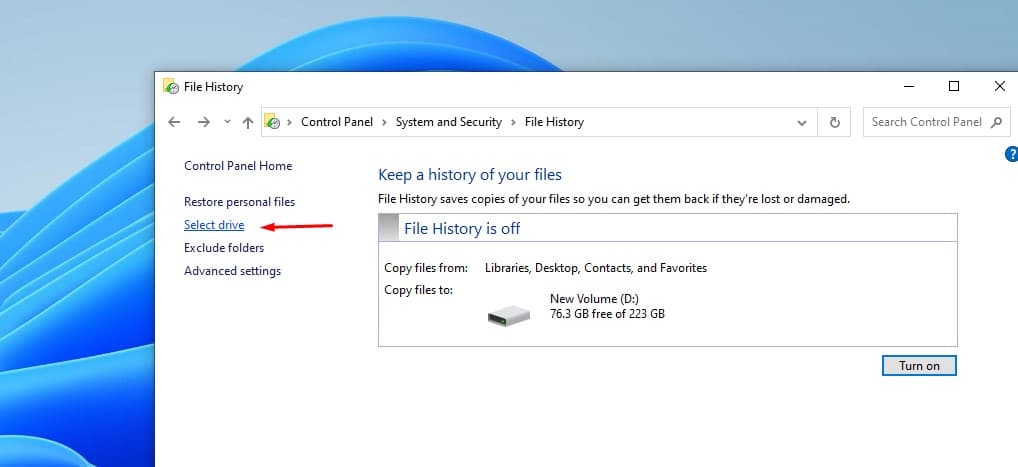 ΝαΕνεργοποίηση ιστορικού αρχείου στα Windows 11, πρέπει να συνδέσετε μια εξωτερική συσκευή αποθήκευσης στον υπολογιστή σας και να ακολουθήσετε αυτά τα βήματα: