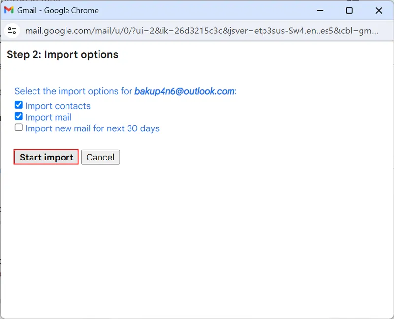 - Στη συνέχεια, επιλέξτεΕισαγωγή ταχυδρομείου και επαφώννα εισαγάγετε μηνύματα ηλεκτρονικού ταχυδρομείου.