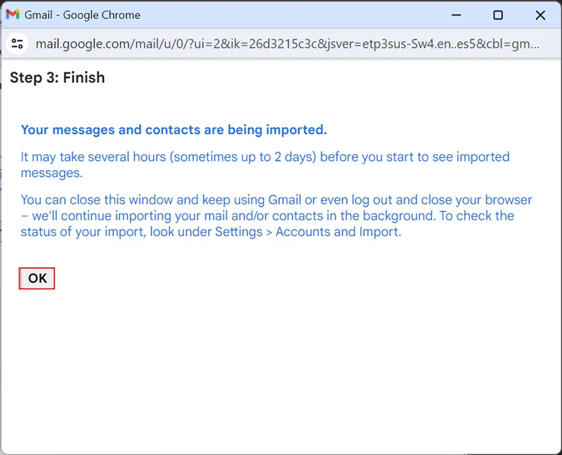 - Τα μηνύματά σας εισάγονται, κάντε κλικ στοΕΝΤΑΞΕΙκουμπί.